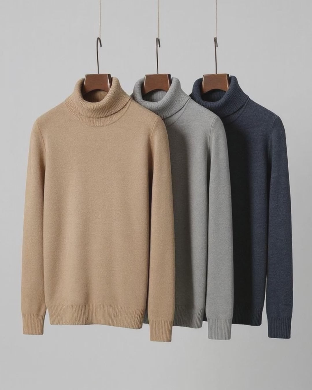 Jersey Beige Lana Lambswool Cuello Alto