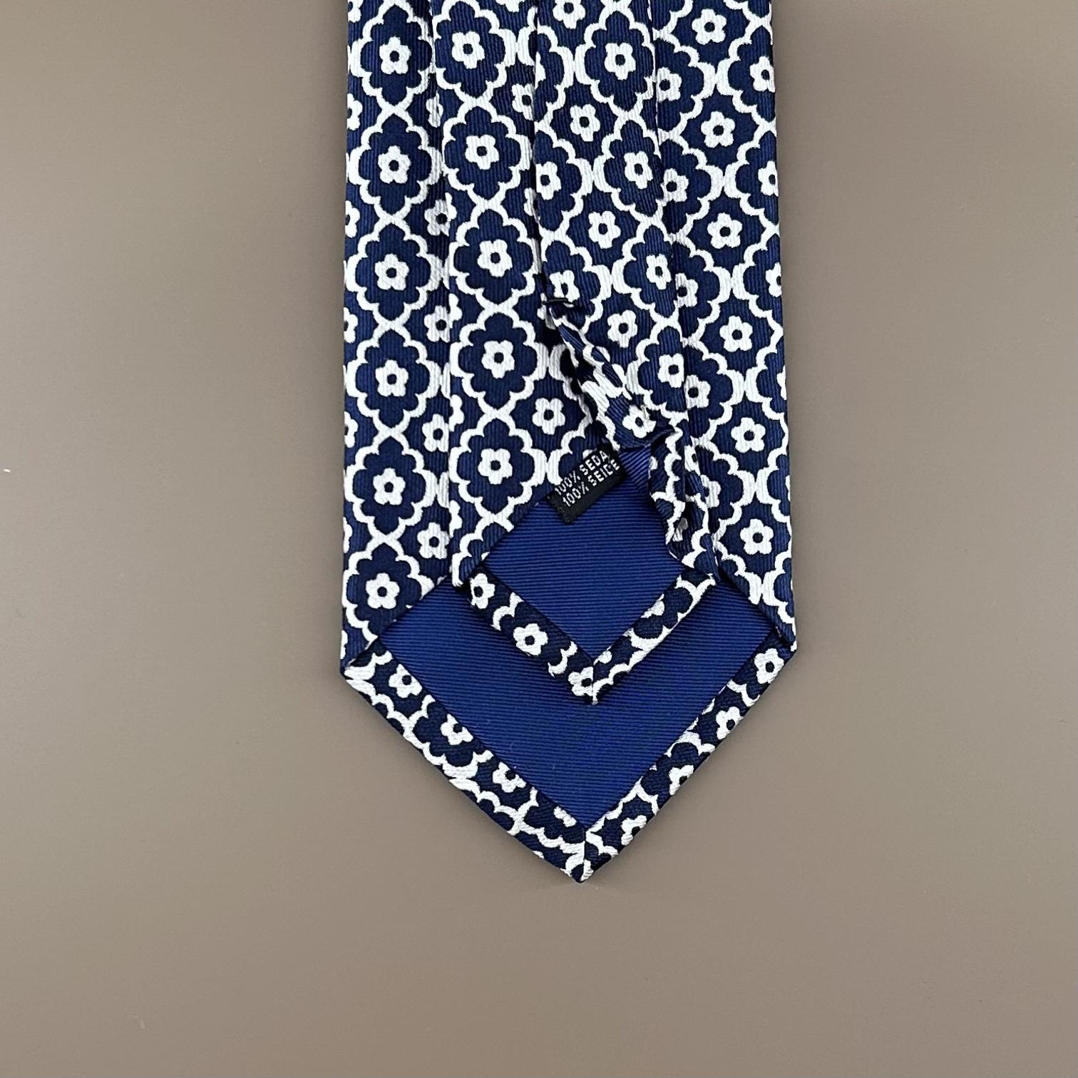 Blue and white patterned tie made from 100% silk jacquard, a tie of excellent quality. Suitable for any season.