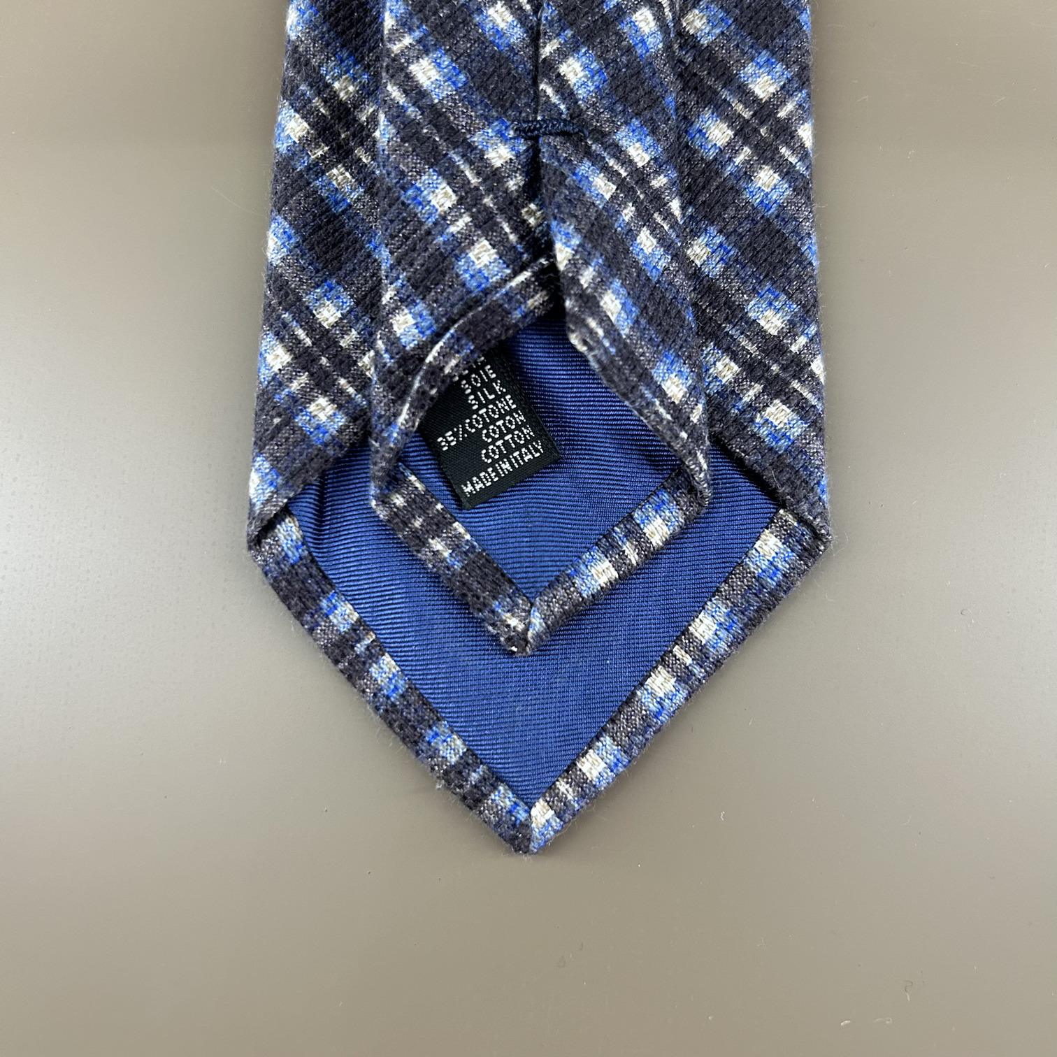 Blue checked and striped tie made from 100% wool, a high-quality tie. Suitable for autumn/winter.