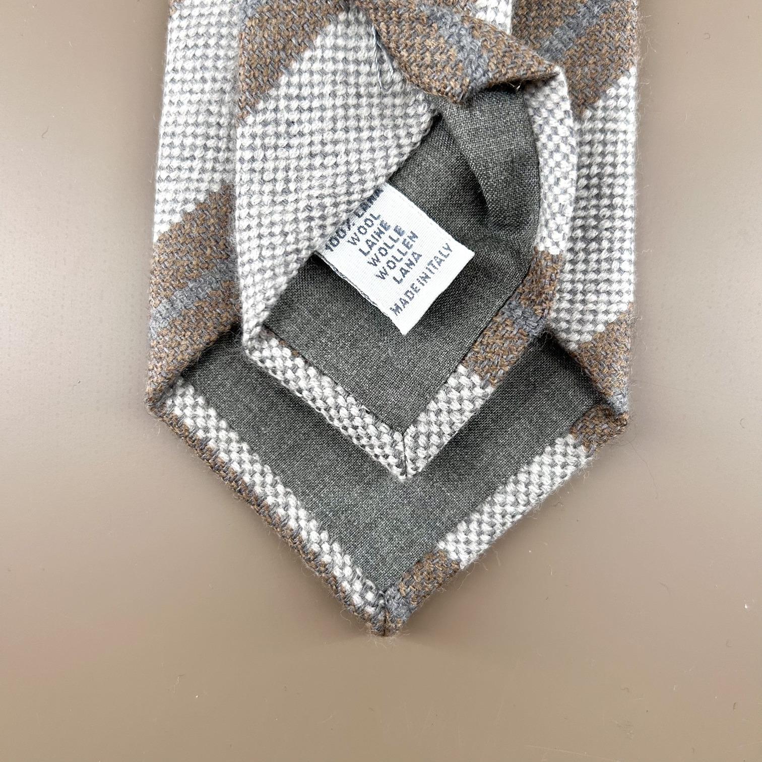 Striped tie in gray, brown, and blue, made from 100% wool. A high-quality tie. Suitable for fall/winter.