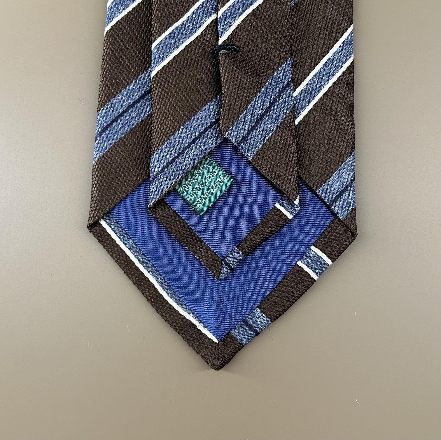 Brown and blue striped tie in 100% silk jacquard, a tie of excellent quality. Suitable for any season.