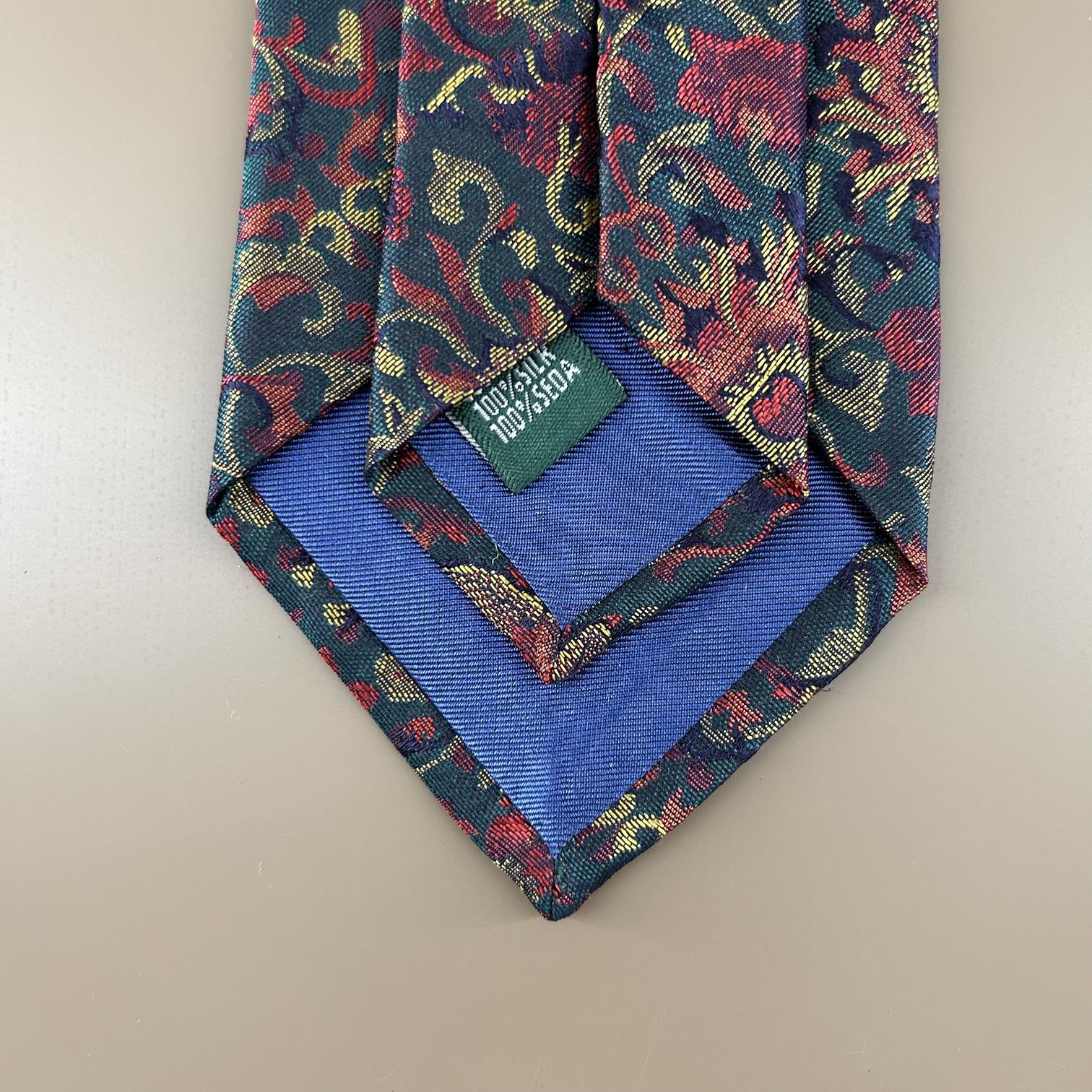 Emerald green silk tie with red flowers