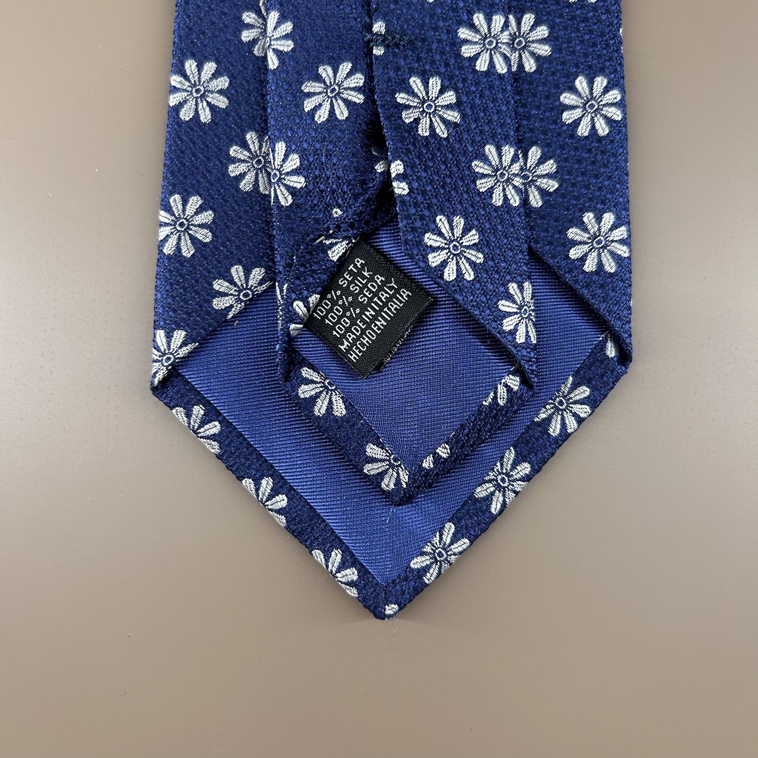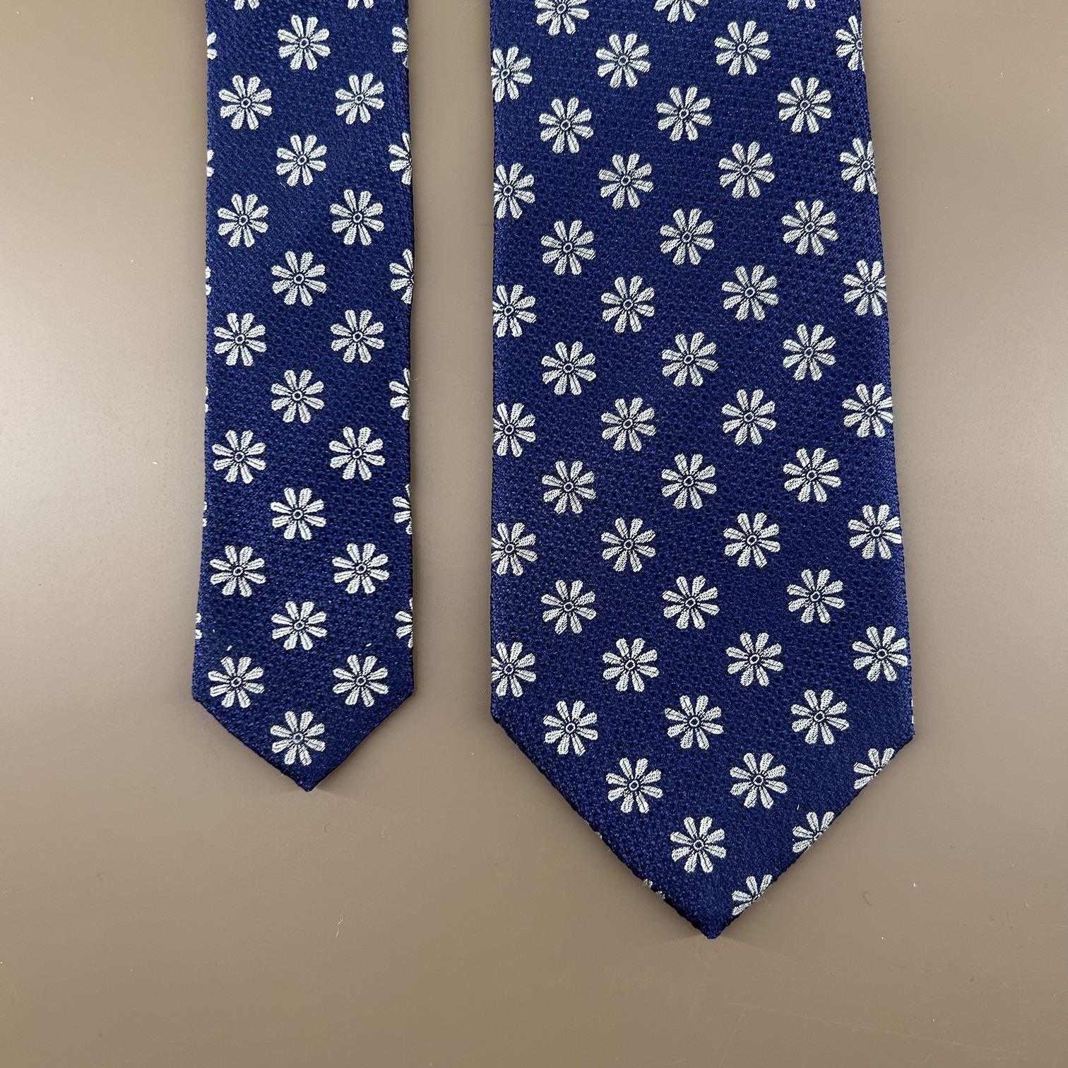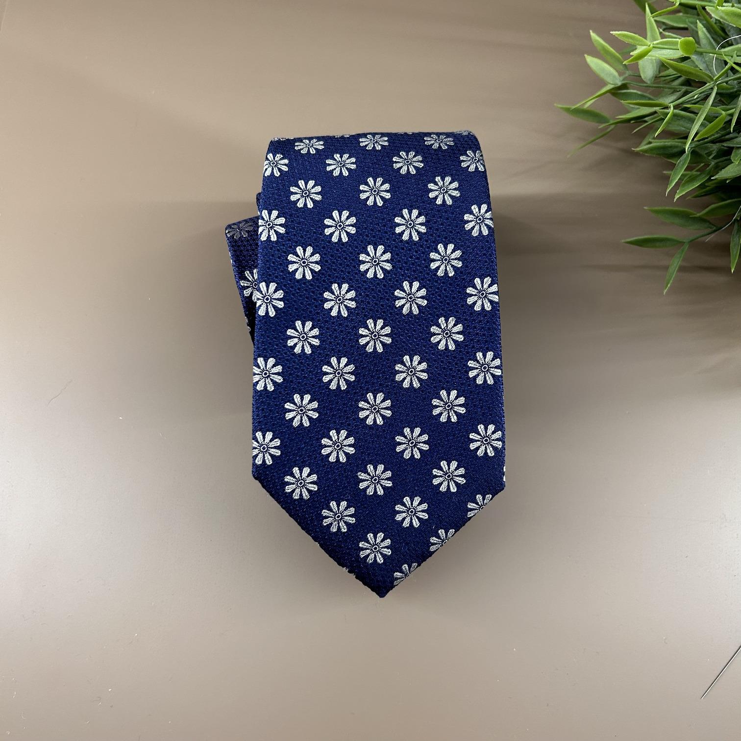 Navy blue and silver patterned tie in 100% silk jacquard, a high-quality tie. Suitable for any season.