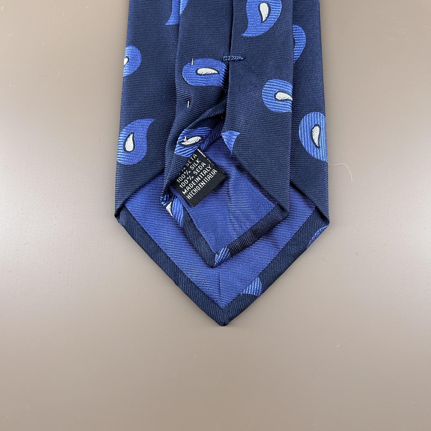 Navy and indigo patterned tie in 100% silk jacquard, a high-quality tie. Suitable for any season.