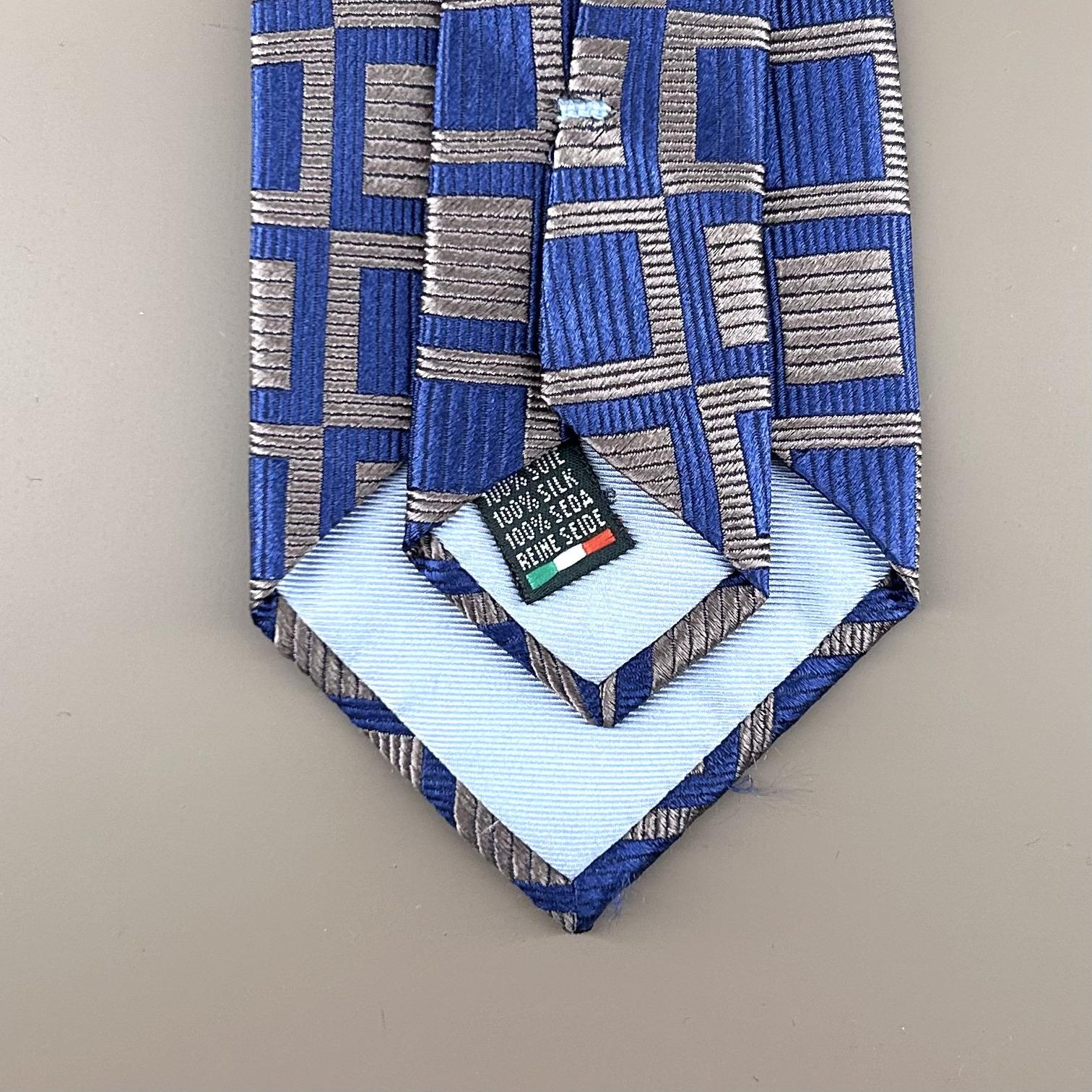 A navy blue and mink jacquard patterned tie made from 100% silk, a high-quality tie. Suitable for any season.