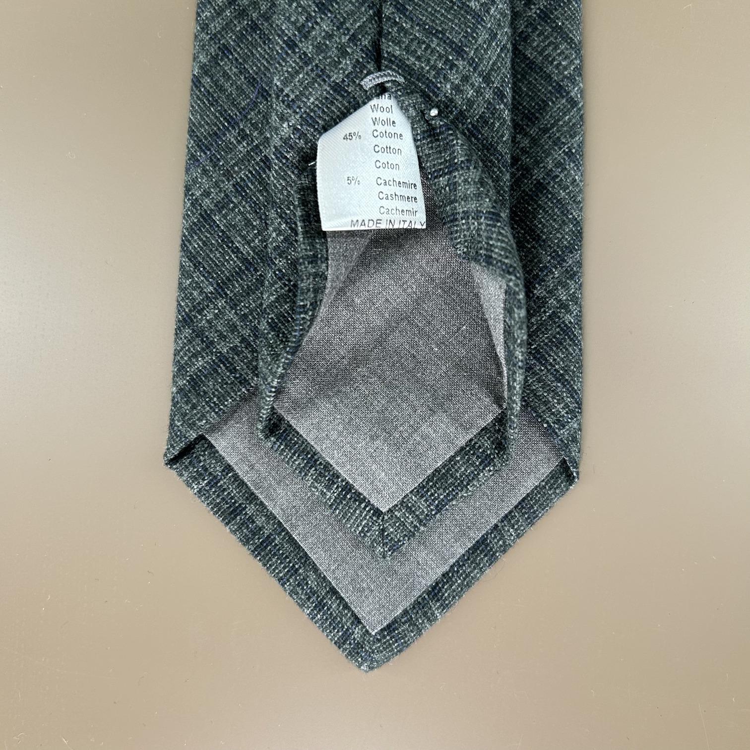 Greyish green checked tie made of 50% wool, 45% cotton, and 5% cashmere, a high-quality tie. Suitable for any season.