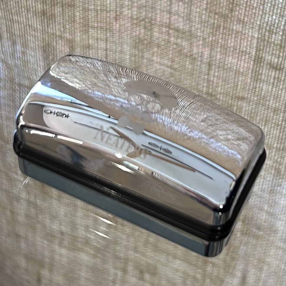 They are housed in a silver metal case of an ideal size for storage, with our logo and the interior lined in white satin. The base where the cufflinks are attached is made of black velvet.