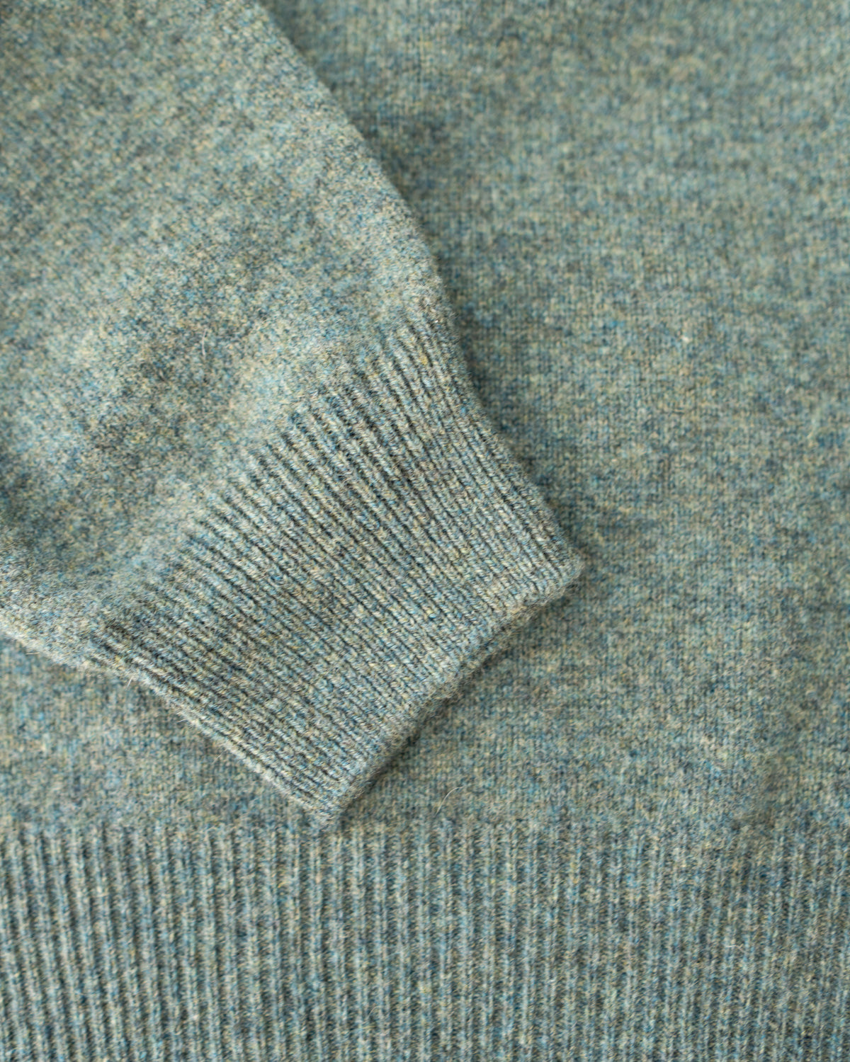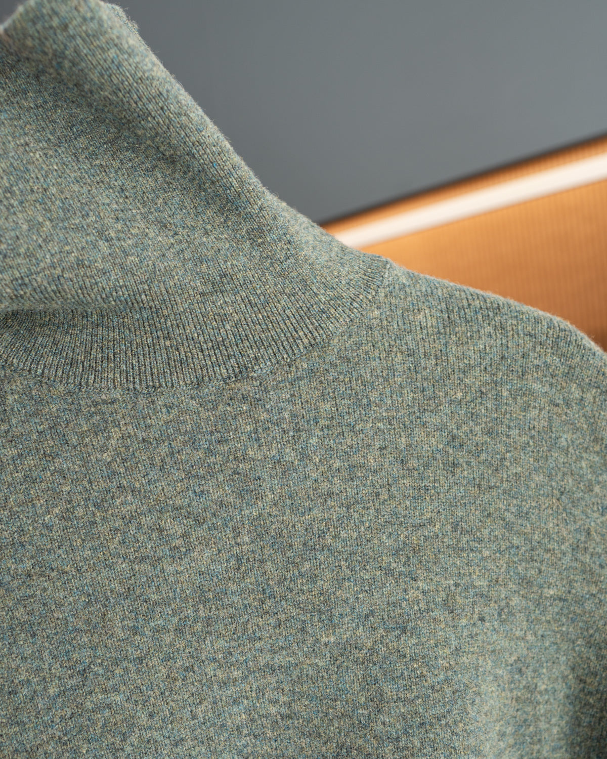 Jersey verde confeccionado en lana merino 100% lambswoool de primera calidad que garantiza suavidad, resistencia y transpirabilidad. Su diseño elegante y clásico con costura marcada en los hombros, cuello vuelto y acabados en canalé en puños y bajo para un ajuste perfecto. Una prenda duradera y funcional, ideal para quienes buscan calidad y crear looks de invierno.