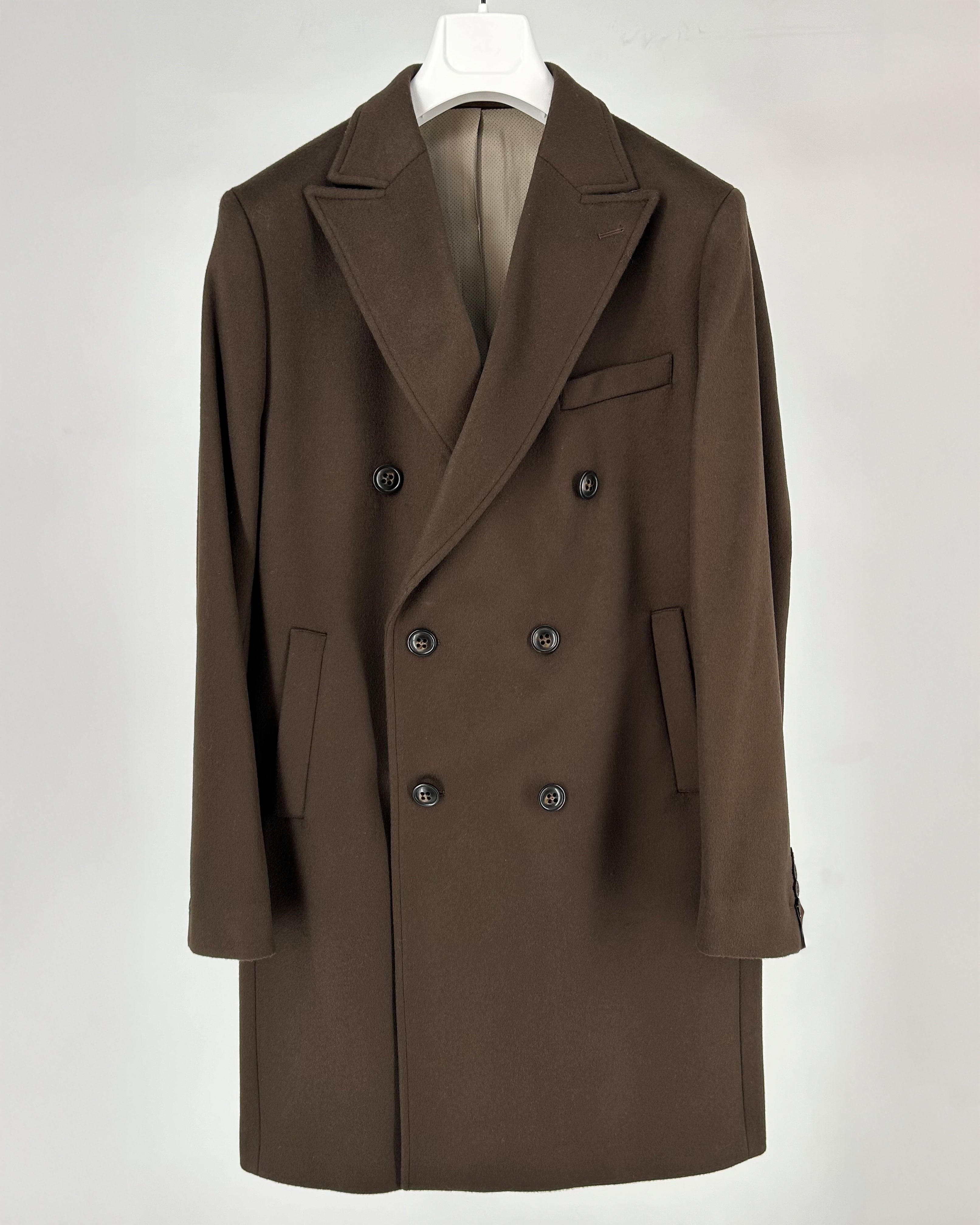 Su color Marrón, el diseño cruzado con solapa ancha y el cinturón trasero crean una silueta elegante y equilibrada. Una prenda pensada como inversión en estilo y durabilidad, ideal para quienes valoran la calidad.