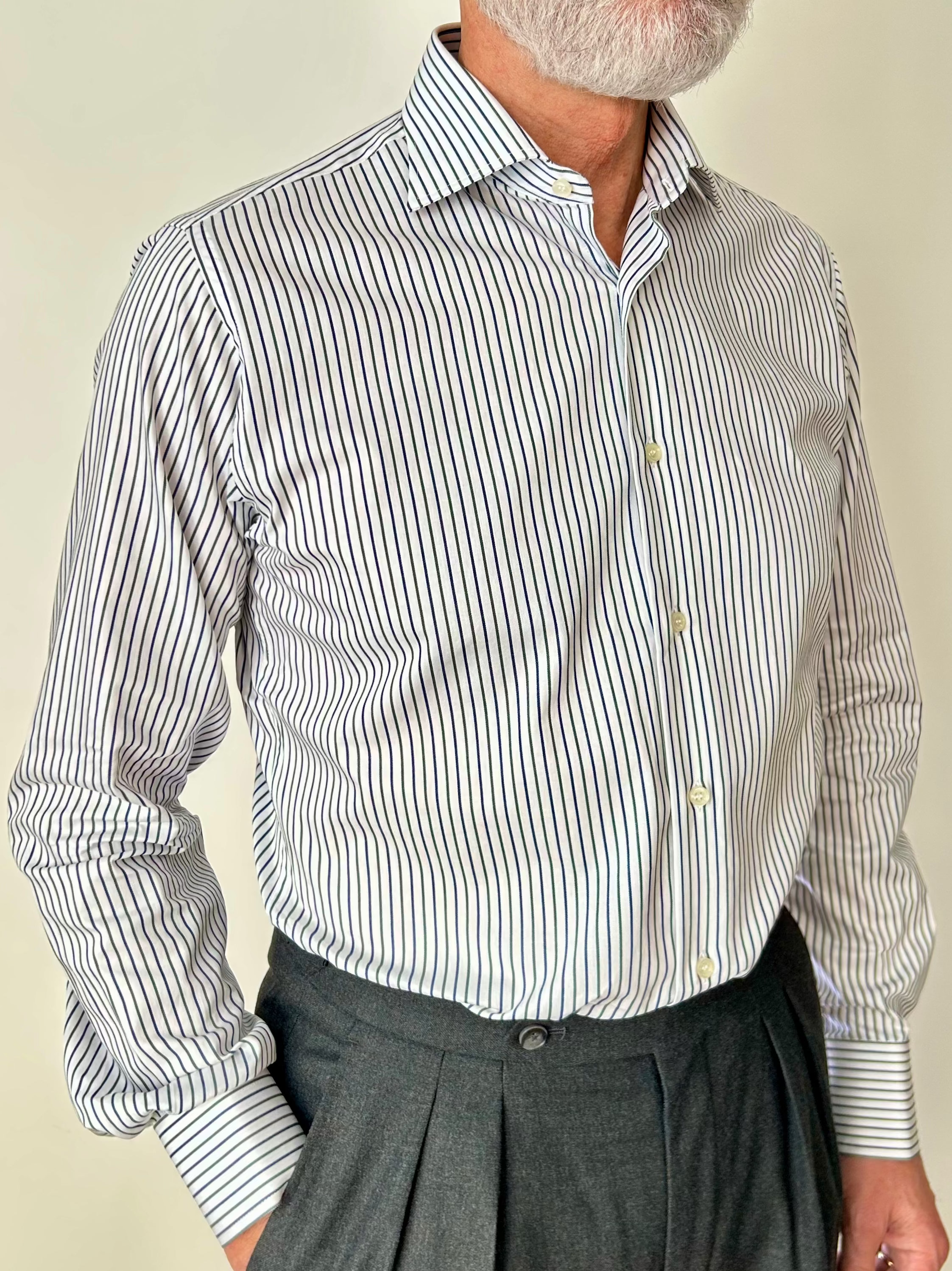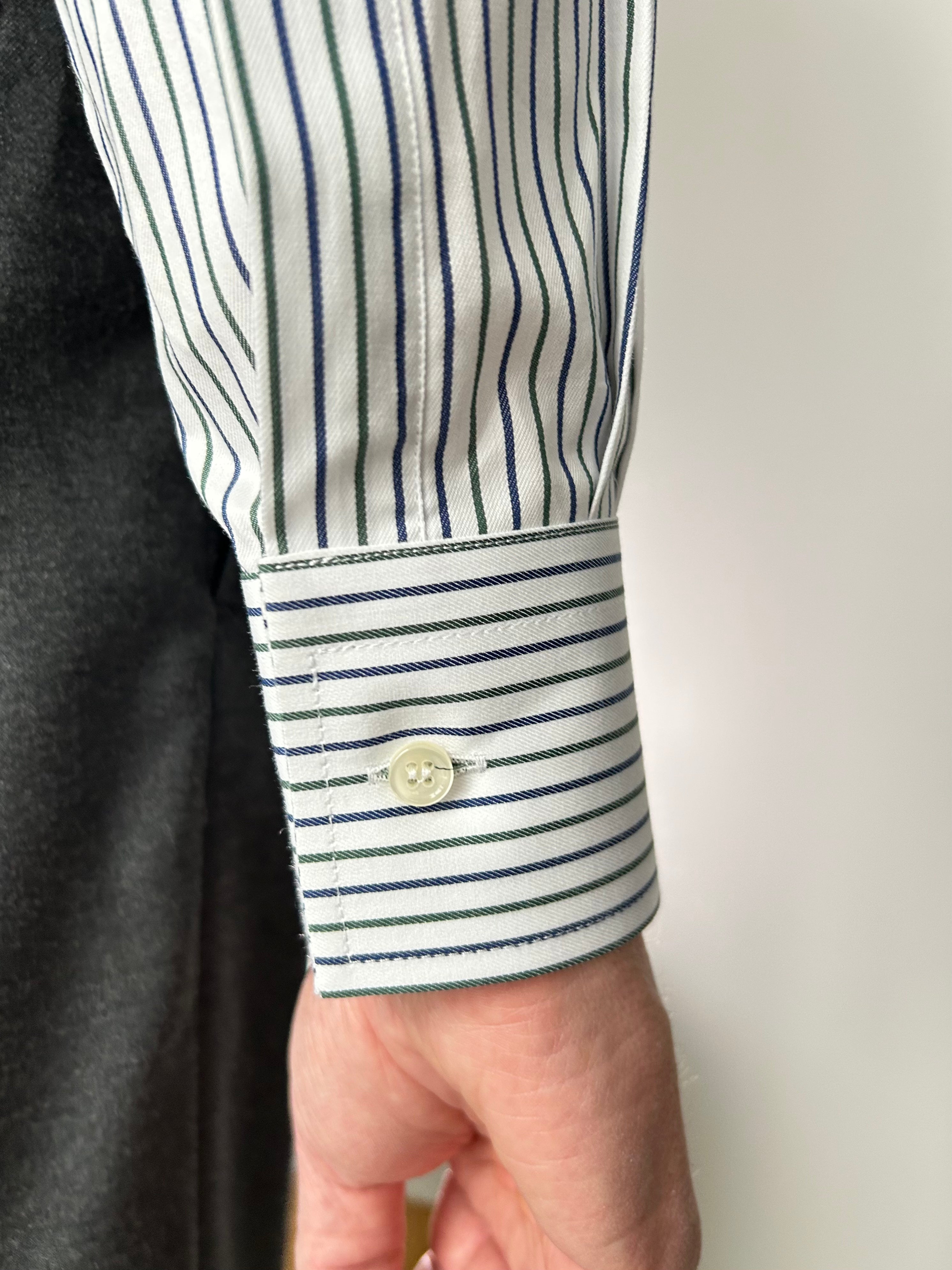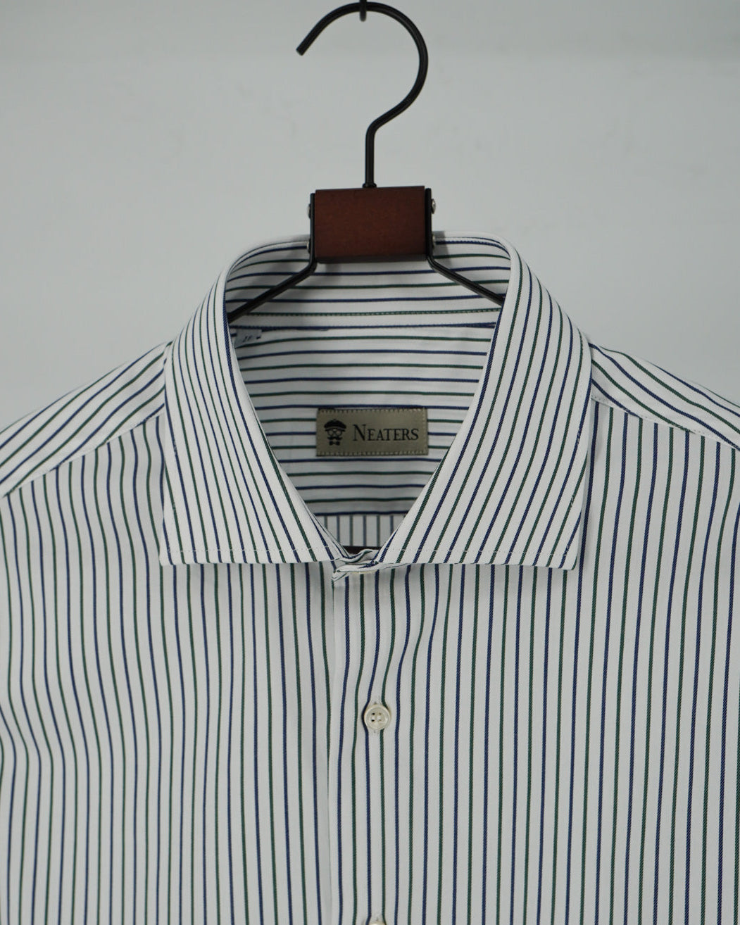 Camisa Twill Rayas Verde y Azul Cuello Italiano