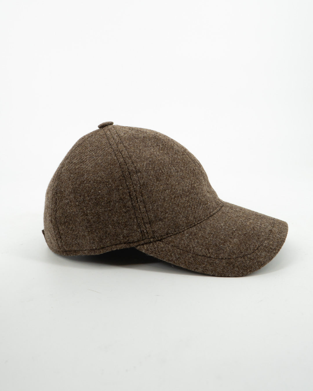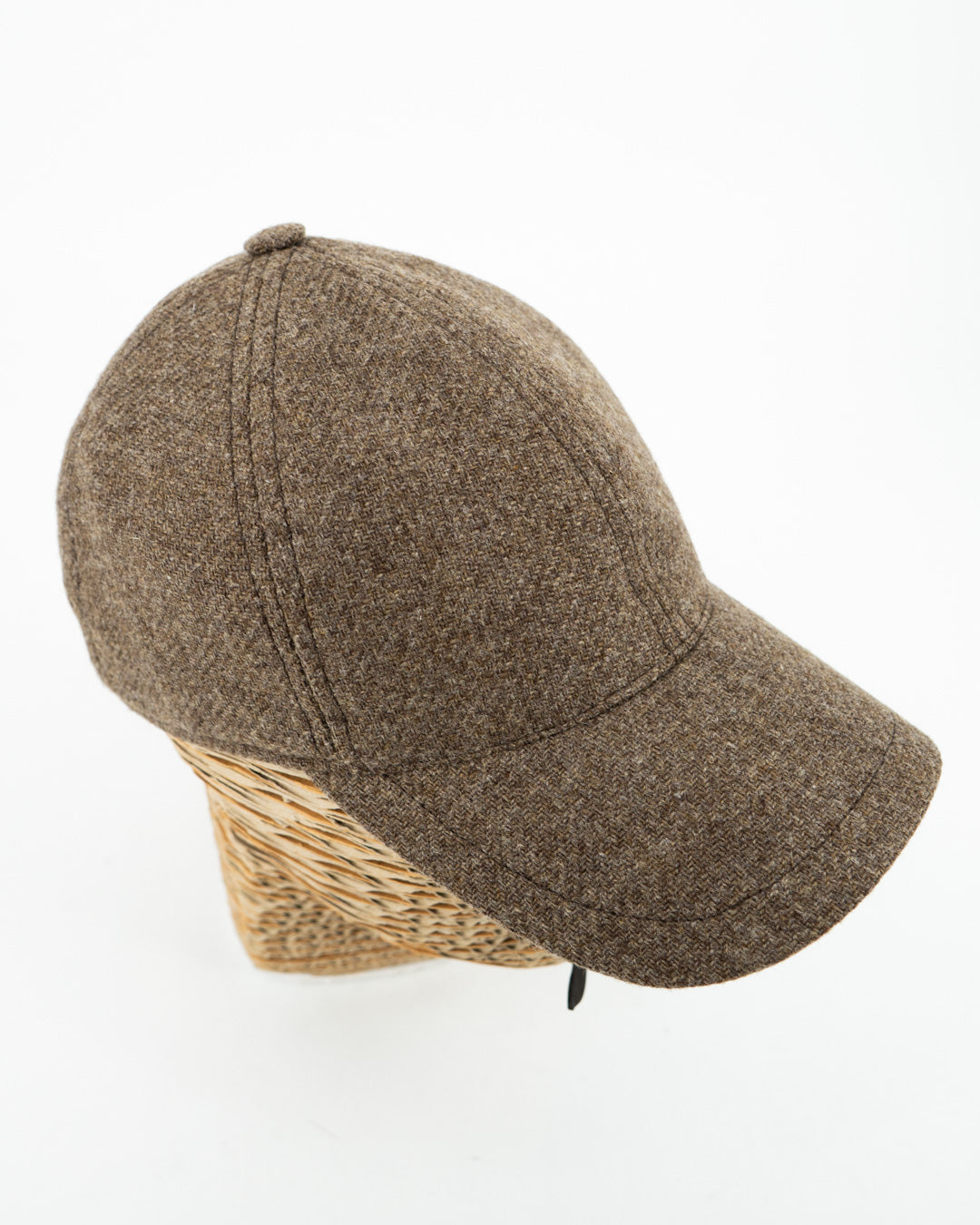 Gorra marrón con visera, ideal para otoño/invierno, práctica y ligera. Sistema de cierre ajustable con velcro en la parte trasera.