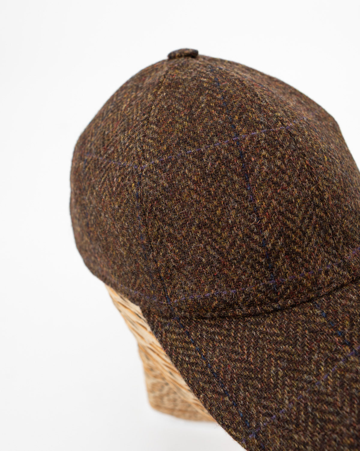 Gorra fondo azul marino con rayas azul y naranja de lana con visera, ideal para otoño/invierno, práctica y ligera. Ajustable en la parte trasera.