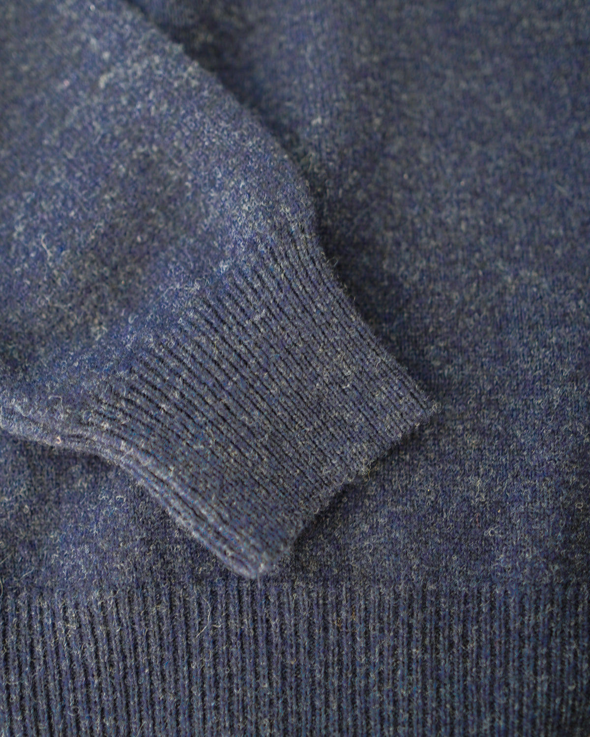 Elegante jersey azul marino confeccionado en lana 100% lambswool, un tejido de máxima calidad que garantiza suavidad, transpirabilidad y durabilidad.